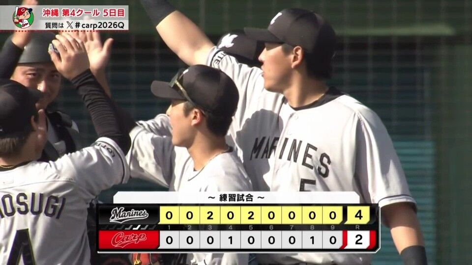 2月18日 広島2-4ロッテ 新戦力・井上が特大の一発!投手8人によるリレーで自責1に抑え引き分け挟んで3連勝!