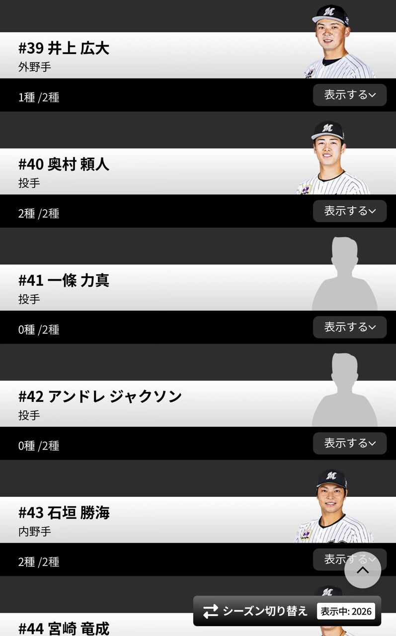 ロッテの公式アプリ…日本人選手で唯一顔写真なし