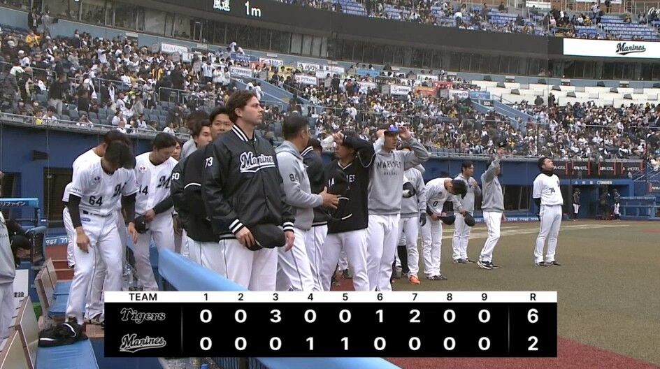 3月18日 ロッテ2-6阪神 先発木村が被弾を浴びるなど3失点、西川の適時打など一時1点差に迫るも後続も打たれ連勝ならず