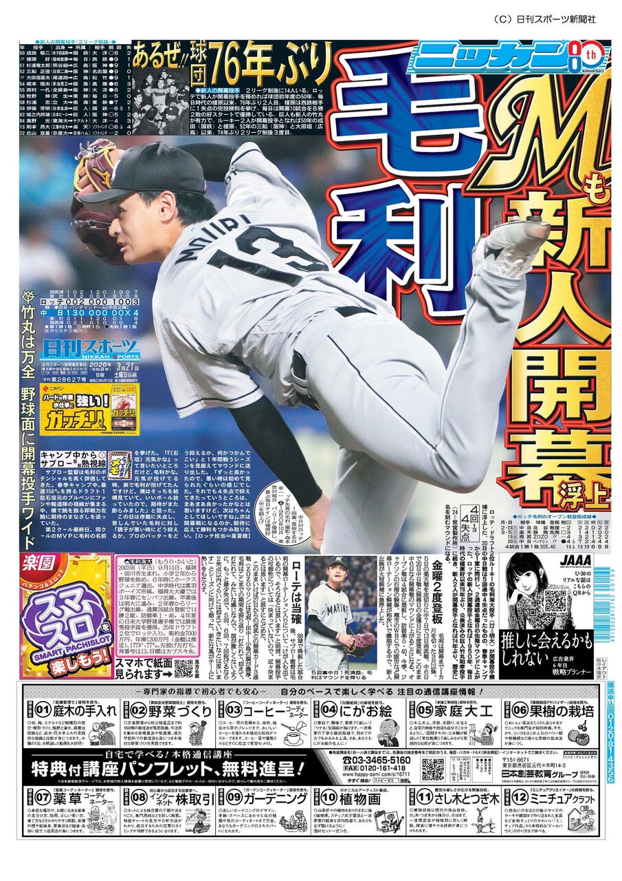 日刊一面。毛利開幕投手